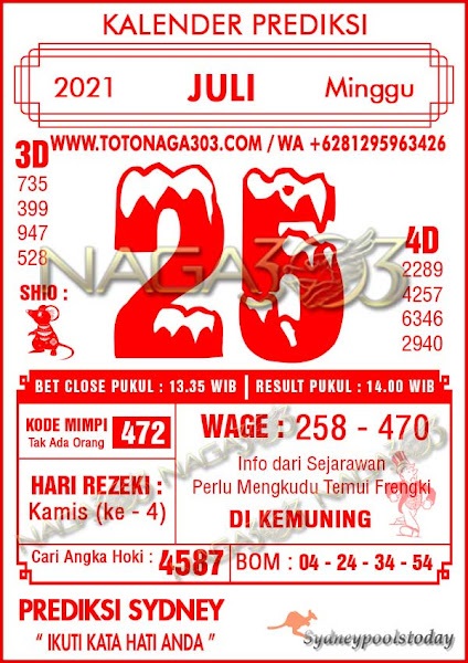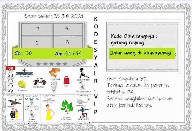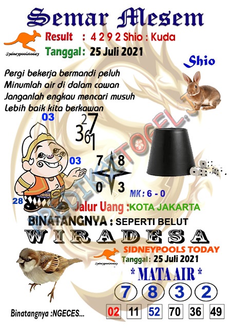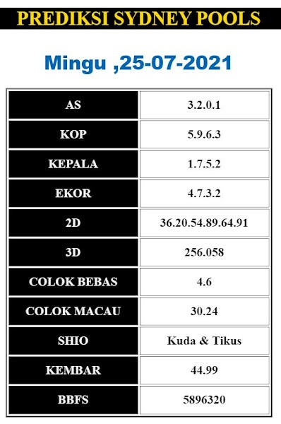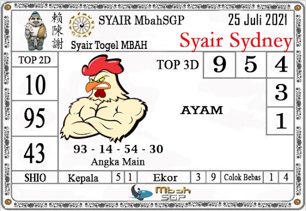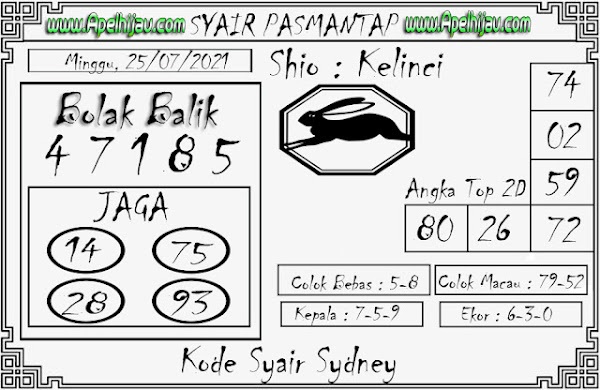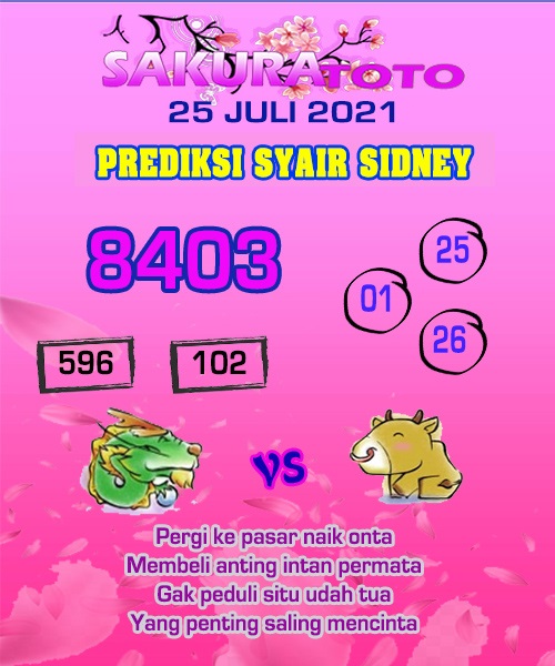 Jenis Permainan Togel Online ini sangat membutuhkan kesadaran dan kepekaan dalam membaca dan juga mamprediksi suatu angka togel. Terutama Syair 25 Juli 2021, dalam forum syair sydney hari ini, kalian akan menemukan kode syair sydney hari ini, nah dalam prediksi togel sydney hari ini, kalian akan mendapatkan syair togel sydney terlengkap hanya di JON4D Sebagai Situs Judi Togel Online terbesar di Indoneisa. Dimana kami munculkan Syair Sydney terjitu agar memudahkan pemain dalam memahami angka keluaran di periode selanjutnya.