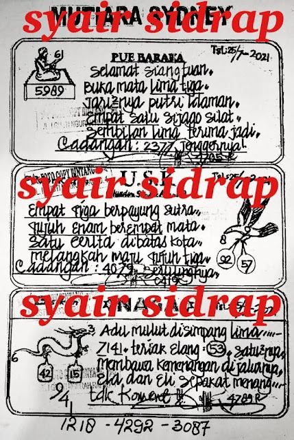 Oh ya, Selalu pergunakan naluri anda untuk membaca makna dari Prediksi Syair Sydney 25 Juli 2021. Janganlah membaca Prediksi Syair Sydney Terjitu dengan terlalu menggebu – gebu dari makna syair yang telah kami berikan. Pahamilah dengan pelan hingga mengerti maksud dari syair yang paling banyak dicari oleh pemain judi togel online ini. Setelah kalian memahami prediksi Syair Sydney ini Kemenangan dengan lebih mudah bisa kalian raih.