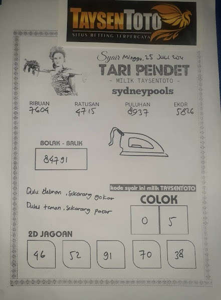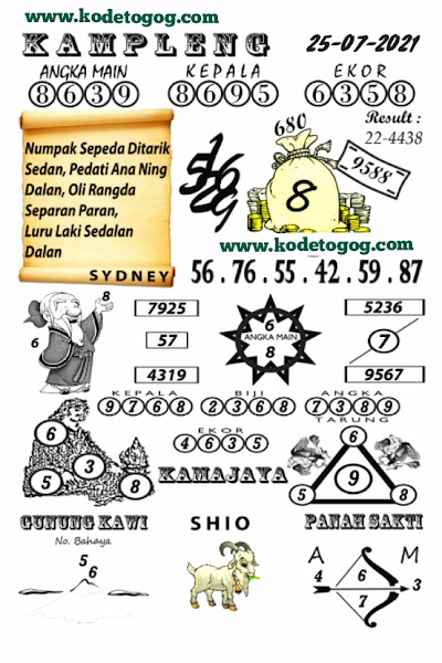Daftar togel online terpercaya di JON4D untuk mendapatkan sebuah kode syair togel terjitu setiap harinya. Pastikan saja Anda tidak akan pernah melewatkan semua syair yang kami berikan ini. Syair Togel Sydney ini adalah yang paling banyak dicari oleh para pemain togel. Untuk itu tidak salah lagi jika anda sebagai Pemain togel online harus mengikuti secara terus menerus semua syair yang kami terbitkan di prediksi ini.