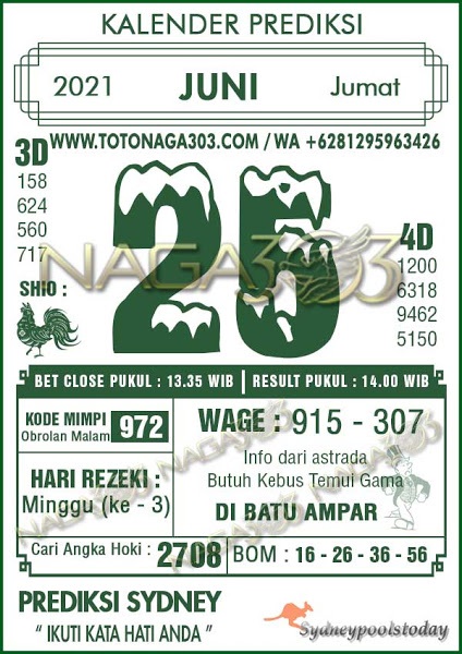 Jenis Permainan Togel Online ini sangat membutuhkan kesadaran dan kepekaan dalam membaca dan juga mamprediksi suatu angka togel. Terutama Syair 25 Juni 2021, dalam forum syair sydney hari ini, kalian akan menemukan kode syair sydney hari ini, nah dalam prediksi togel sydney hari ini, kalian akan mendapatkan syair togel sydney terlengkap hanya di JON4D Sebagai Situs Judi Togel Online terbesar di Indoneisa. Dimana kami munculkan Syair Sydney terjitu agar memudahkan pemain dalam memahami angka keluaran di periode selanjutnya.