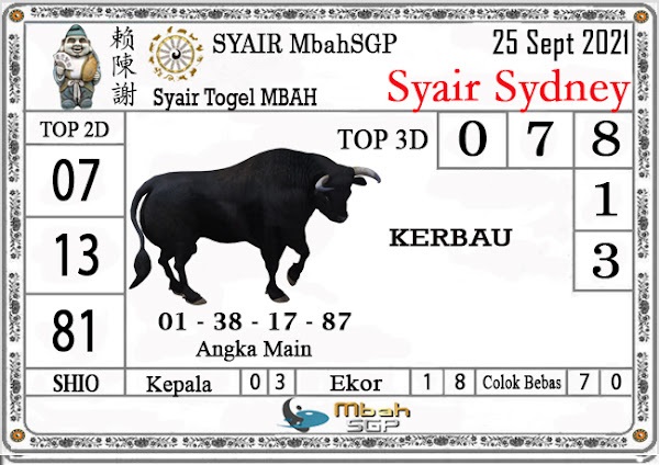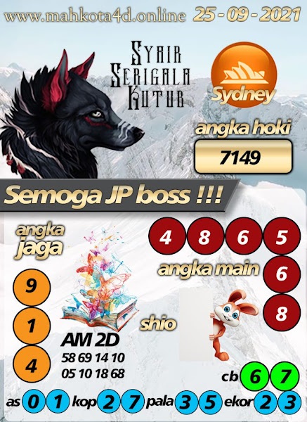 Oh ya, Selalu pergunakan naluri anda untuk membaca makna dari Prediksi Syair Sydney 25 September 2021. Janganlah membaca Prediksi Syair Sydney Terjitu dengan terlalu menggebu – gebu dari makna syair yang telah kami berikan. Pahamilah dengan pelan hingga mengerti maksud dari syair yang paling banyak dicari oleh pemain judi togel online ini. Setelah kalian memahami prediksi Syair Sydney ini Kemenangan dengan lebih mudah bisa kalian raih.