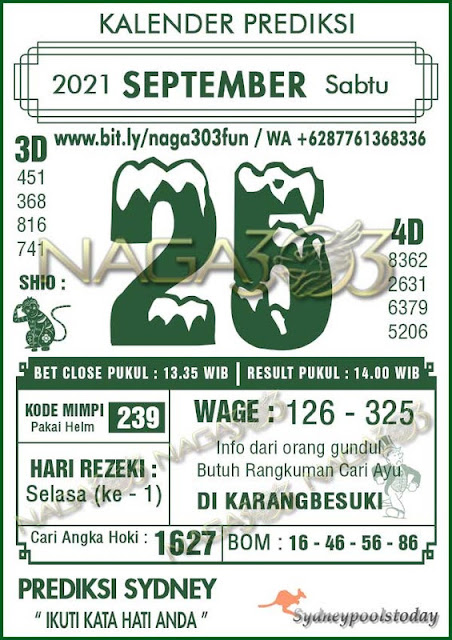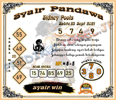 Jenis Permainan Togel Online ini sangat membutuhkan kesadaran dan kepekaan dalam membaca dan juga mamprediksi suatu angka togel. Terutama Syair 25 September 2021, dalam forum syair sydney hari ini, kalian akan menemukan kode syair sydney hari ini, nah dalam prediksi togel sydney hari ini, kalian akan mendapatkan syair togel sydney terlengkap hanya di JON4D Sebagai Situs Judi Togel Online terbesar di Indoneisa. Dimana kami munculkan Syair Sydney terjitu agar memudahkan pemain dalam memahami angka keluaran di periode selanjutnya.