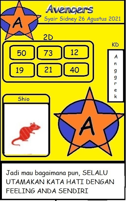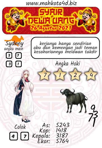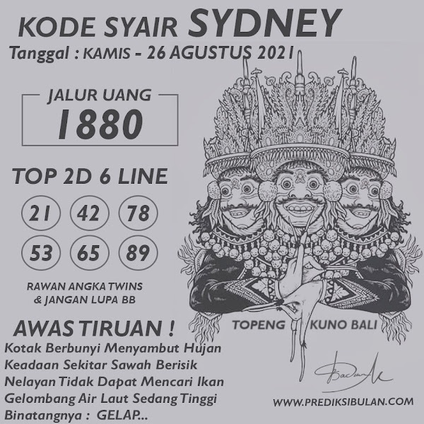 Oh ya, Selalu pergunakan naluri anda untuk membaca makna dari Prediksi Syair Sydney 26 Agustus 2021. Janganlah membaca Prediksi Syair Sydney Terjitu dengan terlalu menggebu – gebu dari makna syair yang telah kami berikan. Pahamilah dengan pelan hingga mengerti maksud dari syair yang paling banyak dicari oleh pemain judi togel online ini. Setelah kalian memahami prediksi Syair Sydney ini Kemenangan dengan lebih mudah bisa kalian raih.