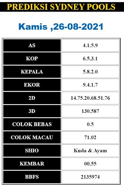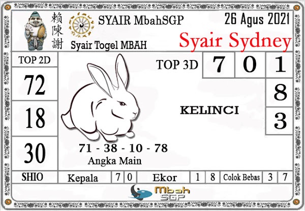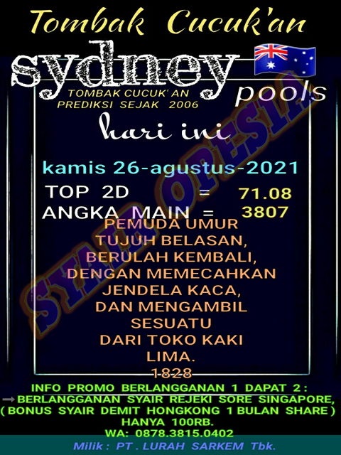 Syair Sdy Kamis 26 Agustus 2021