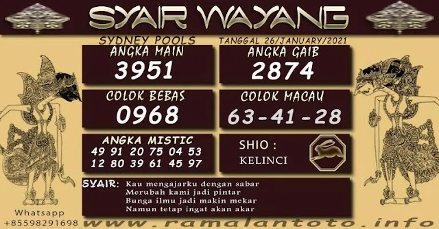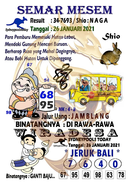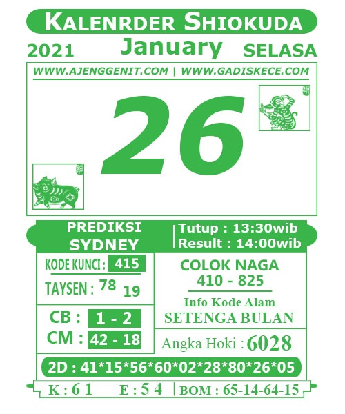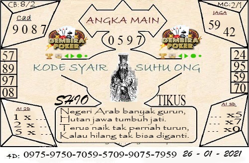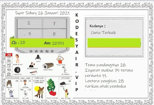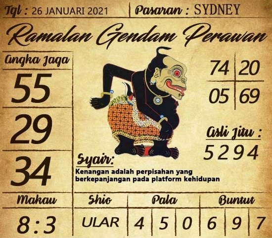 Jenis Permainan Togel Online ini sangat membutuhkan kesadaran dan kepekaan dalam membaca dan juga mamprediksi suatu angka togel. Terutama Syair 26 Januari 2021, dalam forum syair sydney hari ini, kalian akan menemukan kode syair sydney hari ini, nah dalam prediksi togel sydney hari ini, kalian akan mendapatkan syair togel sydney terlengkap hanya di JON4D Sebagai Situs Judi Togel Online terbesar di Indoneisa. Dimana kami munculkan Syair Sydney terjitu agar memudahkan pemain dalam memahami angka keluaran di periode selanjutnya.