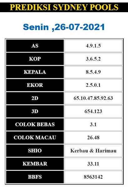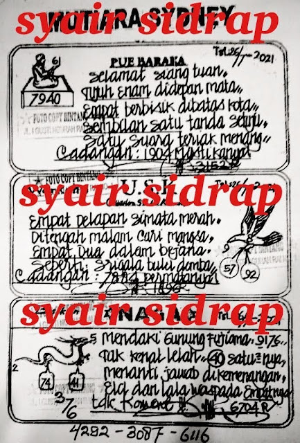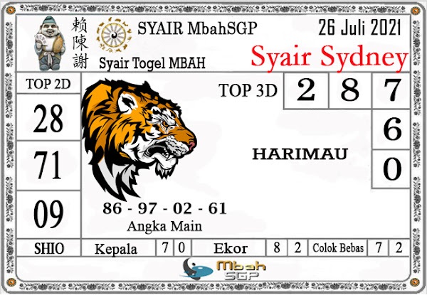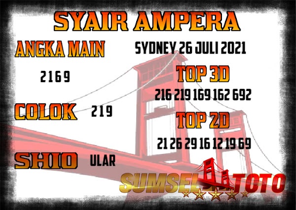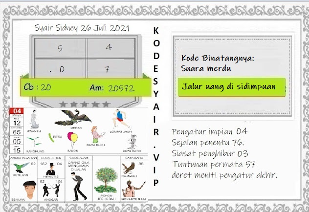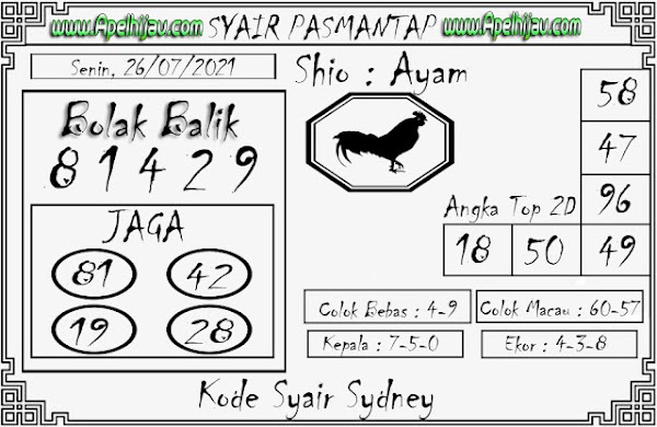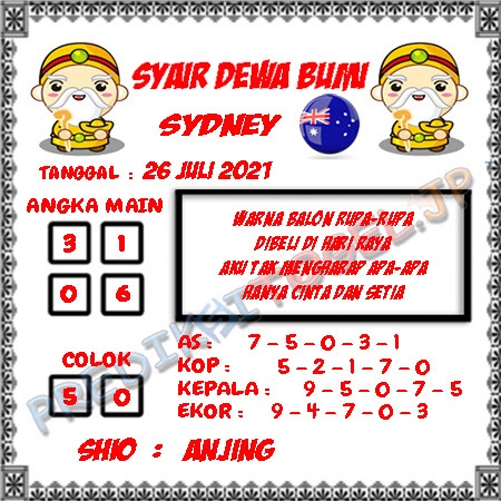 Jenis Permainan Togel Online ini sangat membutuhkan kesadaran dan kepekaan dalam membaca dan juga mamprediksi suatu angka togel. Terutama Syair 26 Juli 2021, dalam forum syair sydney hari ini, kalian akan menemukan kode syair sydney hari ini, nah dalam prediksi togel sydney hari ini, kalian akan mendapatkan syair togel sydney terlengkap hanya di JON4D Sebagai Situs Judi Togel Online terbesar di Indoneisa. Dimana kami munculkan Syair Sydney terjitu agar memudahkan pemain dalam memahami angka keluaran di periode selanjutnya.