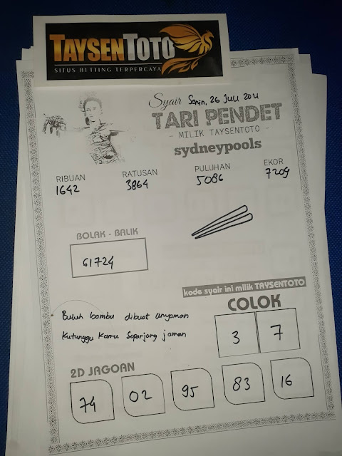 Daftar togel online terpercaya di JON4D untuk mendapatkan sebuah kode syair togel terjitu setiap harinya. Pastikan saja Anda tidak akan pernah melewatkan semua syair yang kami berikan ini. Syair Togel Sydney ini adalah yang paling banyak dicari oleh para pemain togel. Untuk itu tidak salah lagi jika anda sebagai Pemain togel online harus mengikuti secara terus menerus semua syair yang kami terbitkan di prediksi ini.