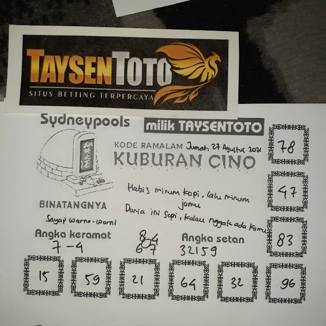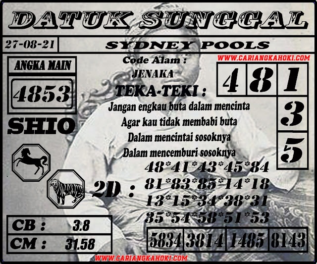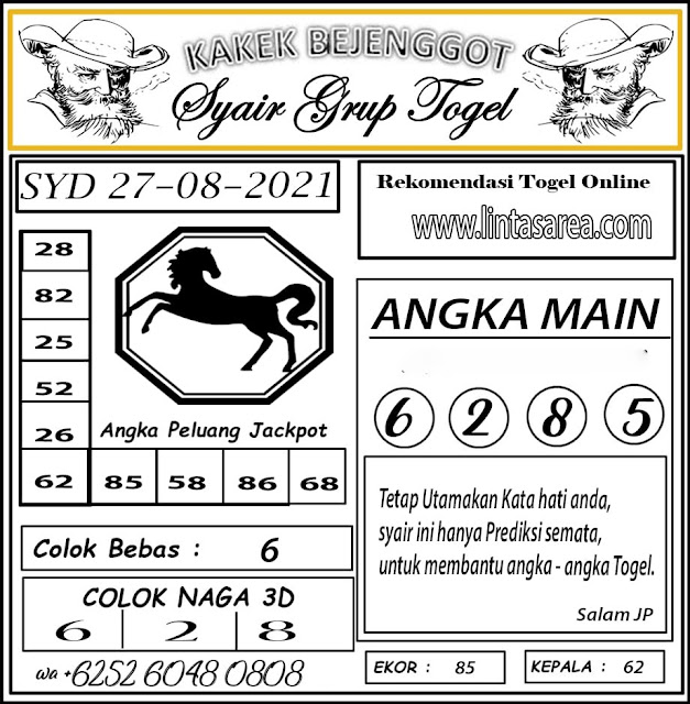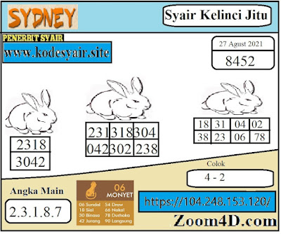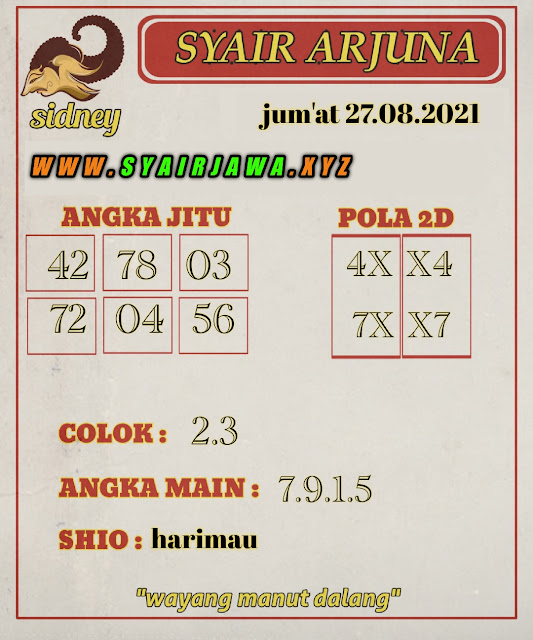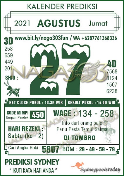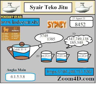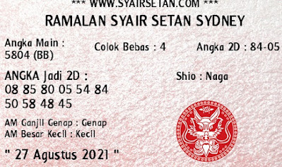 Jenis Permainan Togel Online ini sangat membutuhkan kesadaran dan kepekaan dalam membaca dan juga mamprediksi suatu angka togel. Terutama Syair 27 Agustus 2021, dalam forum syair sydney hari ini, kalian akan menemukan kode syair sydney hari ini, nah dalam prediksi togel sydney hari ini, kalian akan mendapatkan syair togel sydney terlengkap hanya di JON4D Sebagai Situs Judi Togel Online terbesar di Indoneisa. Dimana kami munculkan Syair Sydney terjitu agar memudahkan pemain dalam memahami angka keluaran di periode selanjutnya.