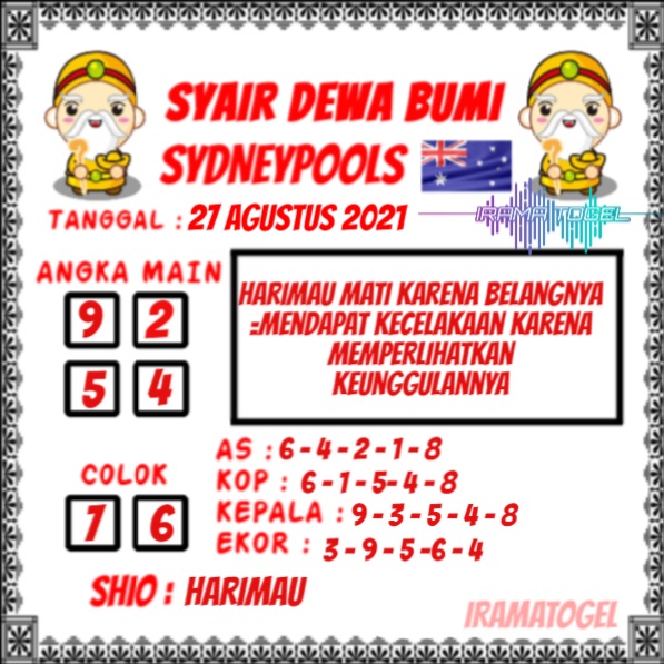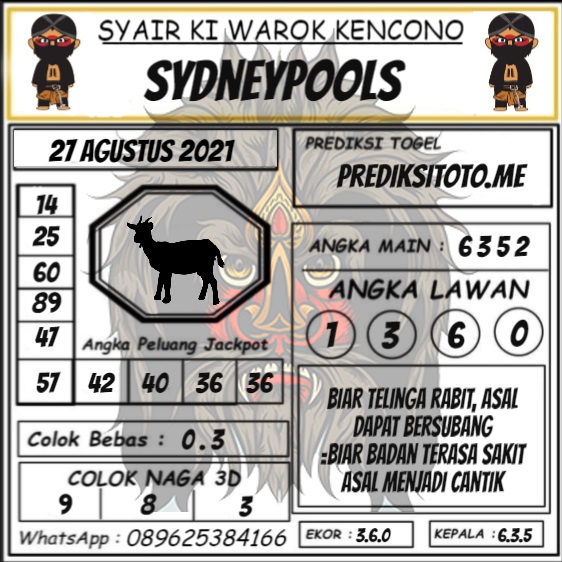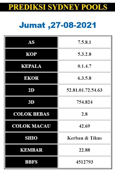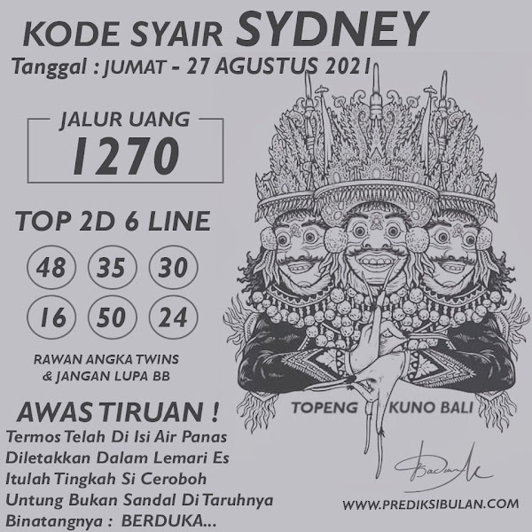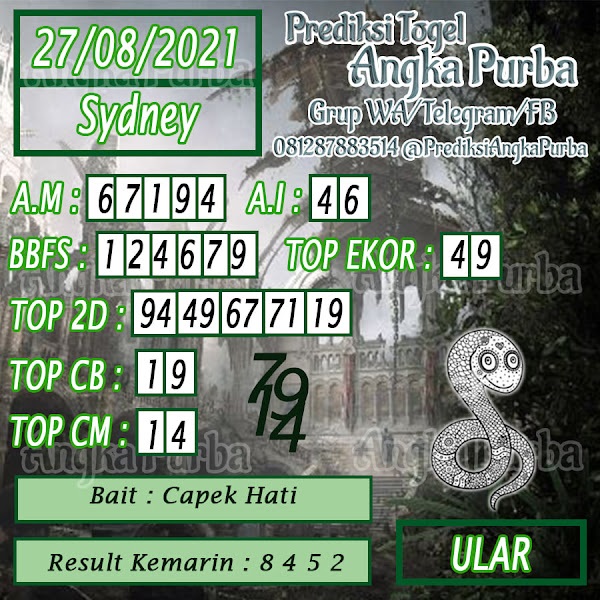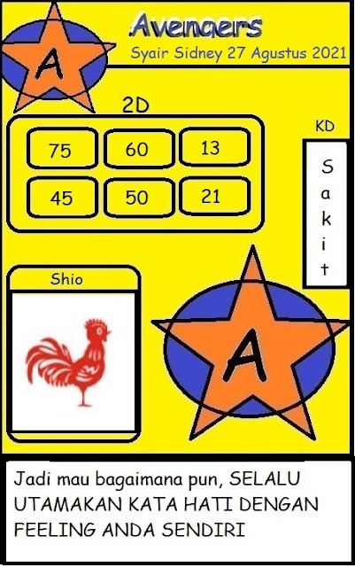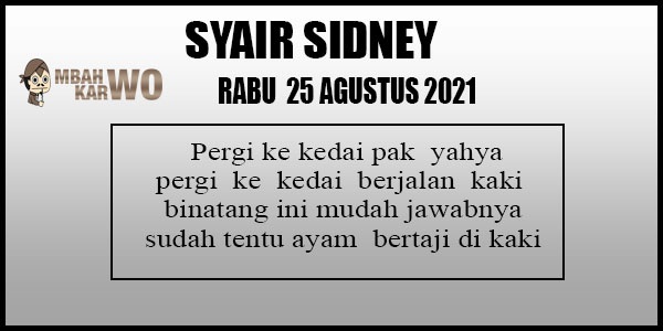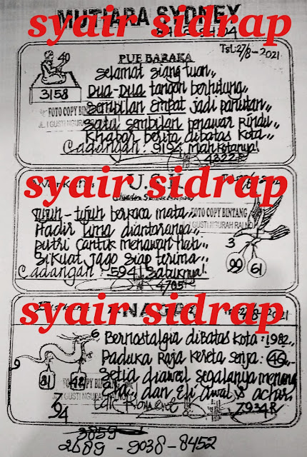 Oh ya, Selalu pergunakan naluri anda untuk membaca makna dari Prediksi Syair Sydney 27 Agustus 2021. Janganlah membaca Prediksi Syair Sydney Terjitu dengan terlalu menggebu – gebu dari makna syair yang telah kami berikan. Pahamilah dengan pelan hingga mengerti maksud dari syair yang paling banyak dicari oleh pemain judi togel online ini. Setelah kalian memahami prediksi Syair Sydney ini Kemenangan dengan lebih mudah bisa kalian raih.
