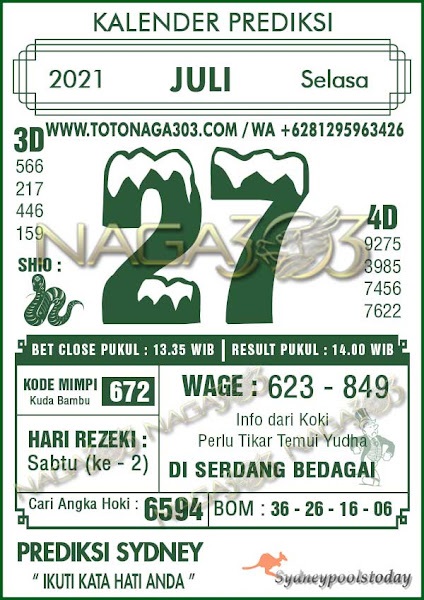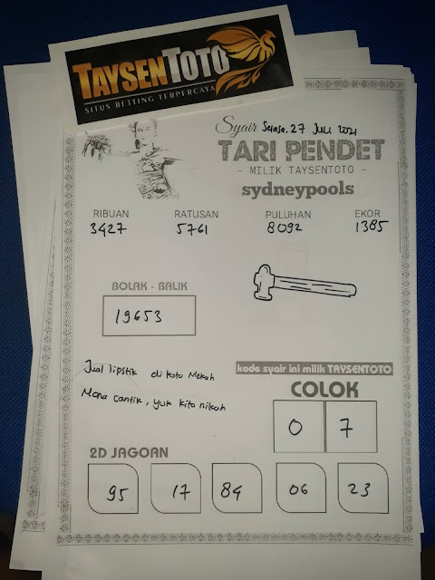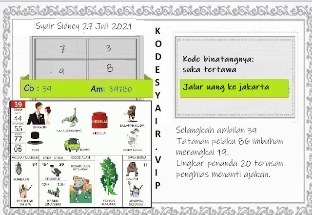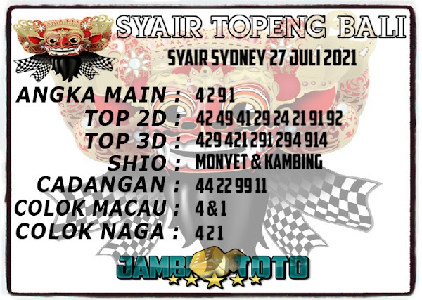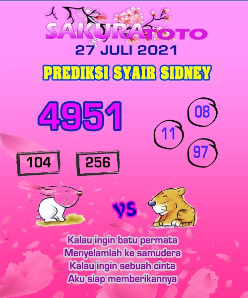 Jenis Permainan Togel Online ini sangat membutuhkan kesadaran dan kepekaan dalam membaca dan juga mamprediksi suatu angka togel. Terutama Syair 27 Juli 2021, dalam forum syair sydney hari ini, kalian akan menemukan kode syair sydney hari ini, nah dalam prediksi togel sydney hari ini, kalian akan mendapatkan syair togel sydney terlengkap hanya di JON4D Sebagai Situs Judi Togel Online terbesar di Indoneisa. Dimana kami munculkan Syair Sydney terjitu agar memudahkan pemain dalam memahami angka keluaran di periode selanjutnya.