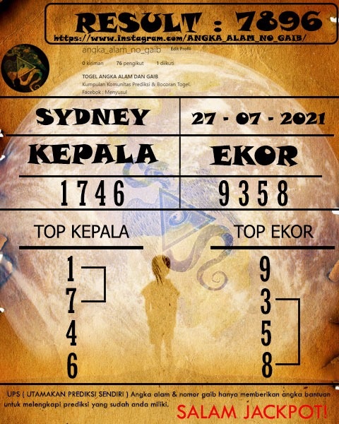 Oh ya, Selalu pergunakan naluri anda untuk membaca makna dari Prediksi Syair Sydney 27 Juli 2021. Janganlah membaca Prediksi Syair Sydney Terjitu dengan terlalu menggebu – gebu dari makna syair yang telah kami berikan. Pahamilah dengan pelan hingga mengerti maksud dari syair yang paling banyak dicari oleh pemain judi togel online ini. Setelah kalian memahami prediksi Syair Sydney ini Kemenangan dengan lebih mudah bisa kalian raih.
