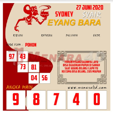 Jenis Permainan Togel Online ini sangat membutuhkan kesadaran dan kepekaan dalam membaca dan juga mamprediksi suatu angka togel. Terutama Syair Sydney 27 Juni 2020, dalam forum syair sydney hari ini, kalian akan menemukan kode syair sydney hari ini, nah dalam prediksi togel sydney hari ini, kalian akan mendapatkan syair togel sydney terlengkap hanya di JON4D Sebagai Situs Judi Togel Online terbesar di Indoneisa. Dimana kami munculkan Syair Sydney terjitu agar memudahkan pemain dalam memahami angka keluaran di periode selanjutnya.