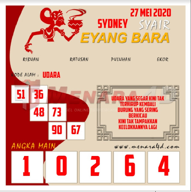 Jenis Permainan Togel Online ini sangat membutuhkan kesadaran dan kepekaan dalam membaca dan juga mamprediksi suatu angka togel. Terutama Syair Sydney 27 Mei 2020, dalam forum syair sydney hari ini, kalian akan menemukan kode syair sydney hari ini, nah dalam prediksi togel sydney hari ini, kalian akan mendapatkan syair togel sydney terlengkap hanya di JON4D Sebagai Situs Judi Togel Online terbesar di Indoneisa. Dimana kami munculkan Syair Sydney terjitu agar memudahkan pemain dalam memahami angka keluaran di periode selanjutnya.