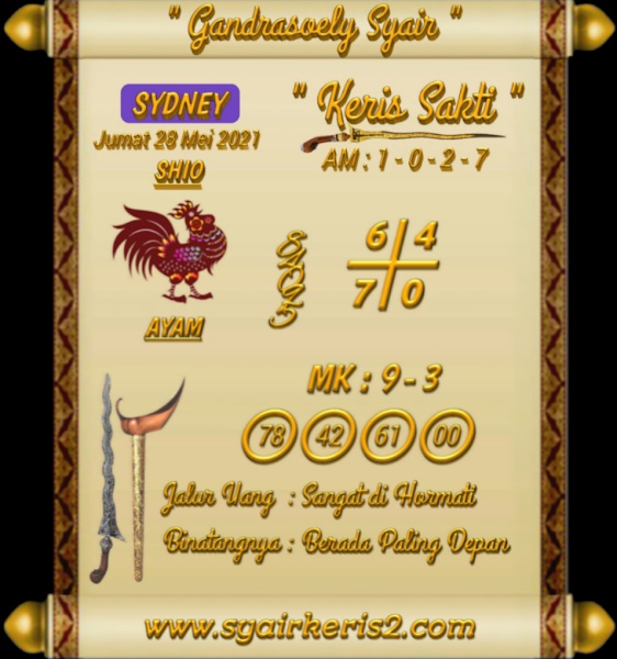 Oh ya, Selalu pergunakan naluri anda untuk membaca makna dari Prediksi Syair Sydney 28 Mei 2021. Janganlah membaca Prediksi Syair Sydney Terjitu dengan terlalu menggebu – gebu dari makna syair yang telah kami berikan. Pahamilah dengan pelan hingga mengerti maksud dari syair yang paling banyak dicari oleh pemain judi togel online ini. Setelah kalian memahami prediksi Syair Sydney ini Kemenangan dengan lebih mudah bisa kalian raih.