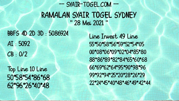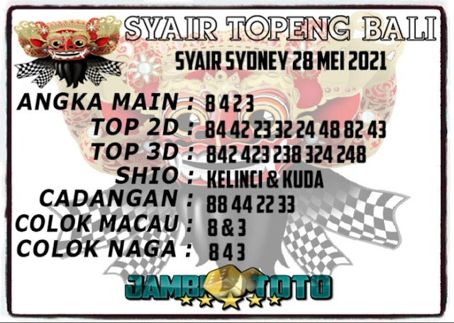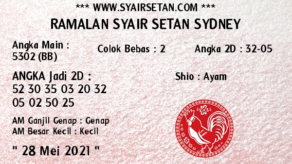Jenis Permainan Togel Online ini sangat membutuhkan kesadaran dan kepekaan dalam membaca dan juga mamprediksi suatu angka togel. Terutama Syair 28 Mei 2021, dalam forum syair sydney hari ini, kalian akan menemukan kode syair sydney hari ini, nah dalam prediksi togel sydney hari ini, kalian akan mendapatkan syair togel sydney terlengkap hanya di JON4D Sebagai Situs Judi Togel Online terbesar di Indoneisa. Dimana kami munculkan Syair Sydney terjitu agar memudahkan pemain dalam memahami angka keluaran di periode selanjutnya.
