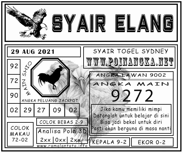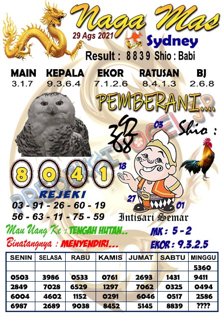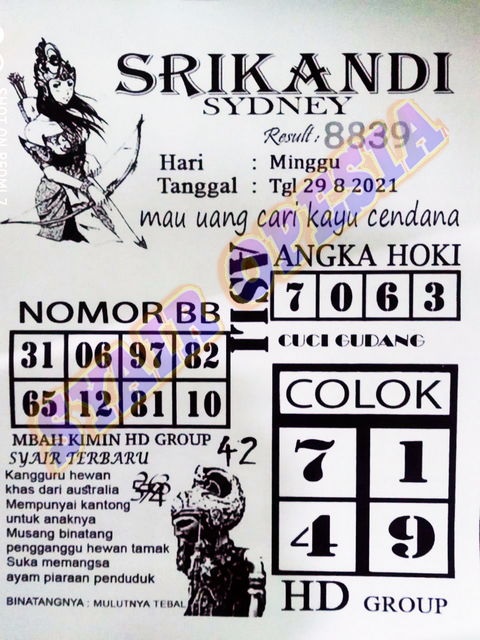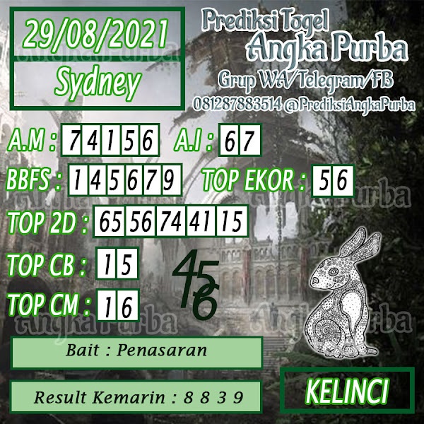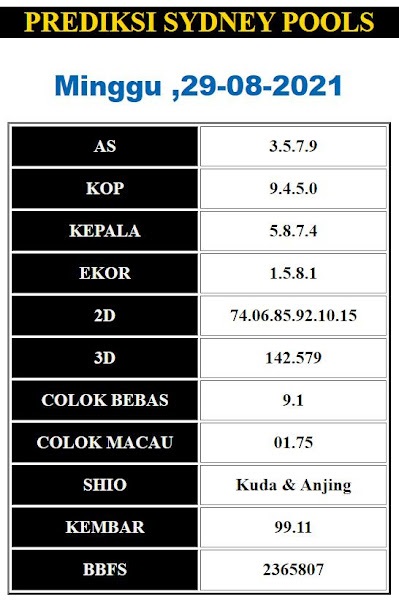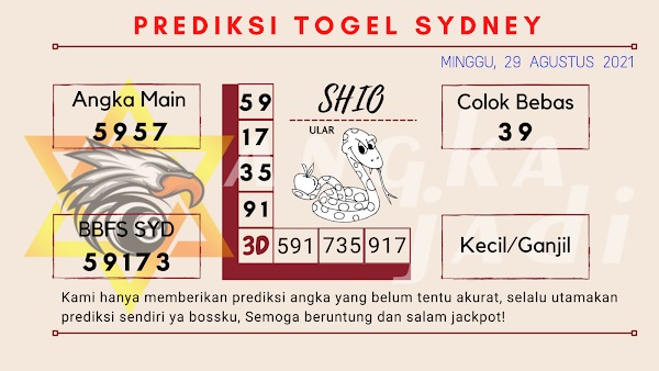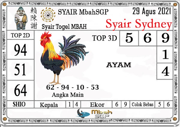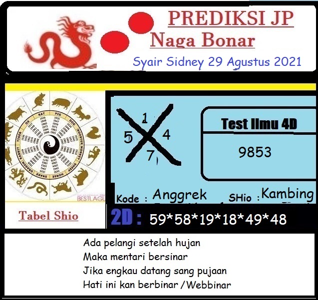 Jenis Permainan Togel Online ini sangat membutuhkan kesadaran dan kepekaan dalam membaca dan juga mamprediksi suatu angka togel. Terutama Syair 29 Agustus 2021, dalam forum syair sydney hari ini, kalian akan menemukan kode syair sydney hari ini, nah dalam prediksi togel sydney hari ini, kalian akan mendapatkan syair togel sydney terlengkap hanya di JON4D Sebagai Situs Judi Togel Online terbesar di Indoneisa. Dimana kami munculkan Syair Sydney terjitu agar memudahkan pemain dalam memahami angka keluaran di periode selanjutnya.