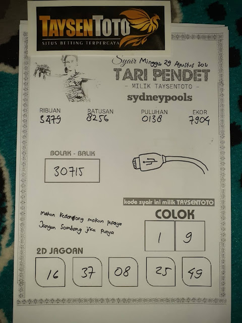 Daftar togel online terpercaya di JON4D untuk mendapatkan sebuah kode syair togel terjitu setiap harinya. Pastikan saja Anda tidak akan pernah melewatkan semua syair yang kami berikan ini. Syair Togel Sydney ini adalah yang paling banyak dicari oleh para pemain togel. Untuk itu tidak salah lagi jika anda sebagai Pemain togel online harus mengikuti secara terus menerus semua syair yang kami terbitkan di prediksi ini.
