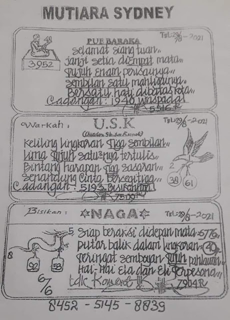 Oh ya, Selalu pergunakan naluri anda untuk membaca makna dari Prediksi Syair Sydney 29 Agustus 2021. Janganlah membaca Prediksi Syair Sydney Terjitu dengan terlalu menggebu – gebu dari makna syair yang telah kami berikan. Pahamilah dengan pelan hingga mengerti maksud dari syair yang paling banyak dicari oleh pemain judi togel online ini. Setelah kalian memahami prediksi Syair Sydney ini Kemenangan dengan lebih mudah bisa kalian raih.