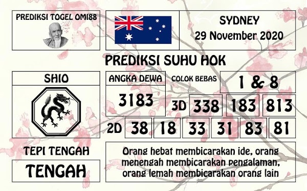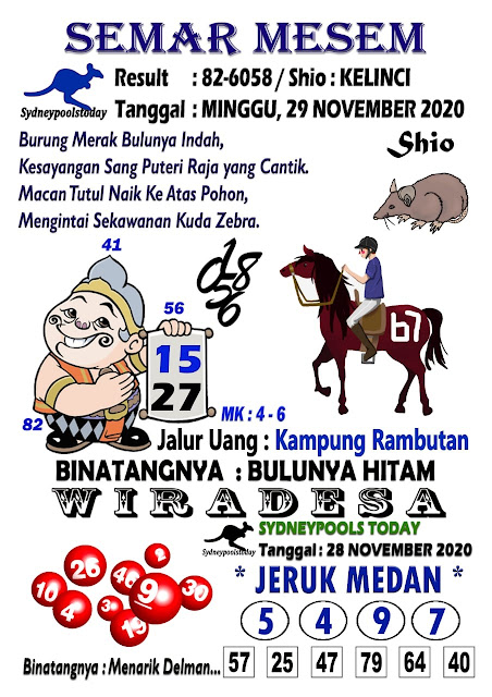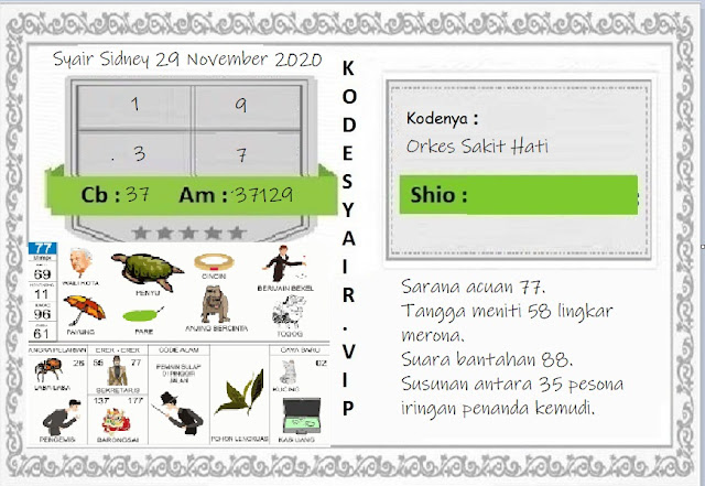 Jenis Permainan Togel Online ini sangat membutuhkan kesadaran dan kepekaan dalam membaca dan juga mamprediksi suatu angka togel. Terutama Syair 29 November 2020, dalam forum syair sydney hari ini, kalian akan menemukan kode syair sydney hari ini, nah dalam prediksi togel sydney hari ini, kalian akan mendapatkan syair togel sydney terlengkap hanya di JON4D Sebagai Situs Judi Togel Online terbesar di Indoneisa. Dimana kami munculkan Syair Sydney terjitu agar memudahkan pemain dalam memahami angka keluaran di periode selanjutnya.