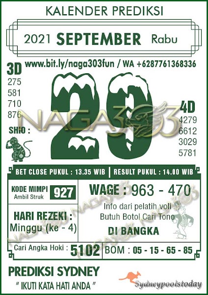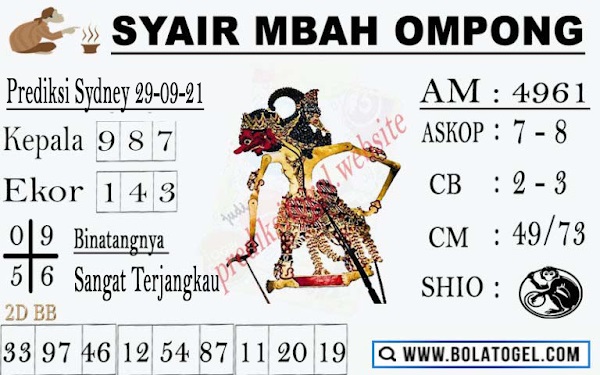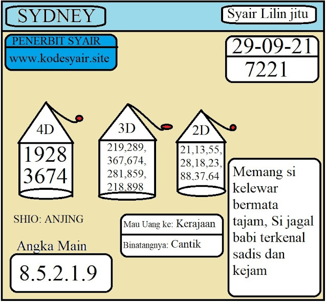 Jenis Permainan Togel Online ini sangat membutuhkan kesadaran dan kepekaan dalam membaca dan juga mamprediksi suatu angka togel. Terutama Syair 29 September 2021, dalam forum syair sydney hari ini, kalian akan menemukan kode syair sydney hari ini, nah dalam prediksi togel sydney hari ini, kalian akan mendapatkan syair togel sydney terlengkap hanya di JON4D Sebagai Situs Judi Togel Online terbesar di Indoneisa. Dimana kami munculkan Syair Sydney terjitu agar memudahkan pemain dalam memahami angka keluaran di periode selanjutnya.