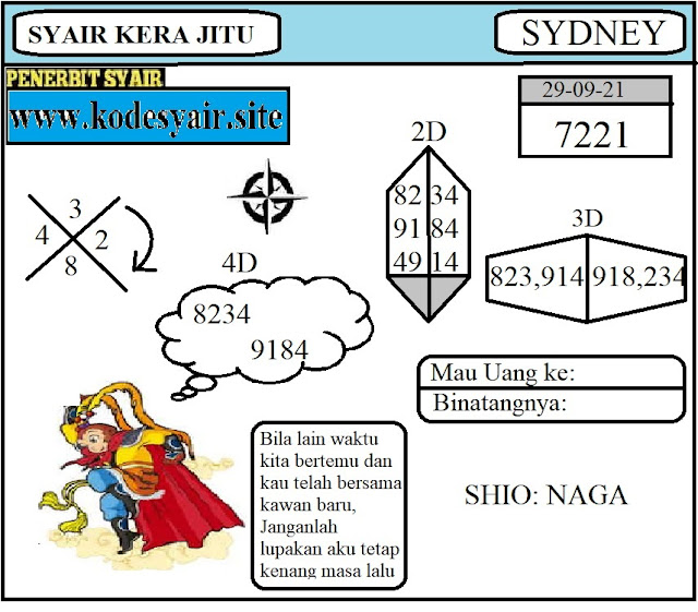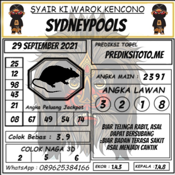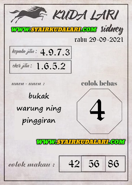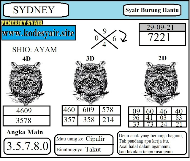 Oh ya, Selalu pergunakan naluri anda untuk membaca makna dari Prediksi Syair Sydney 29 September 2021. Janganlah membaca Prediksi Syair Sydney Terjitu dengan terlalu menggebu – gebu dari makna syair yang telah kami berikan. Pahamilah dengan pelan hingga mengerti maksud dari syair yang paling banyak dicari oleh pemain judi togel online ini. Setelah kalian memahami prediksi Syair Sydney ini Kemenangan dengan lebih mudah bisa kalian raih.