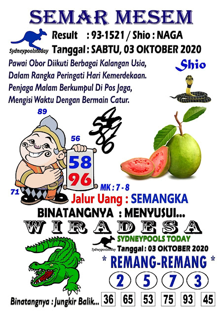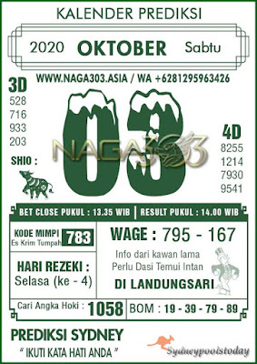 Oh ya, Selalu pergunakan naluri anda untuk membaca makna dari Prediksi Syair Sydney 3 October 2020. Janganlah membaca Prediksi Syair Sydney Terjitu dengan terlalu menggebu – gebu dari makna syair yang telah kami berikan. Pahamilah dengan pelan hingga mengerti maksud dari syair yang paling banyak dicari oleh pemain judi togel online ini. Setelah kalian memahami prediksi Syair Sydney ini Kemenangan dengan lebih mudah bisa kalian raih.