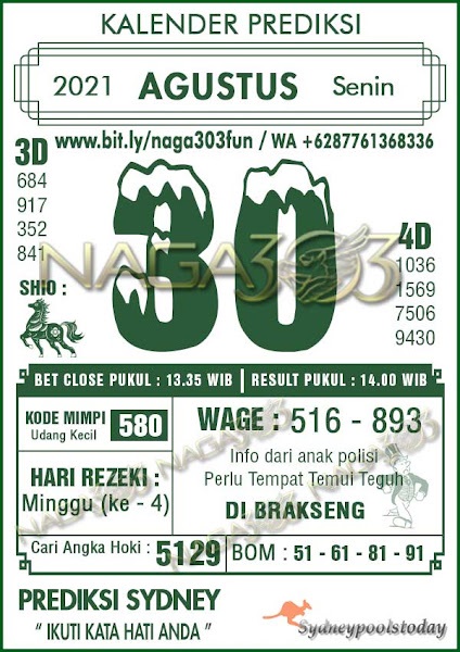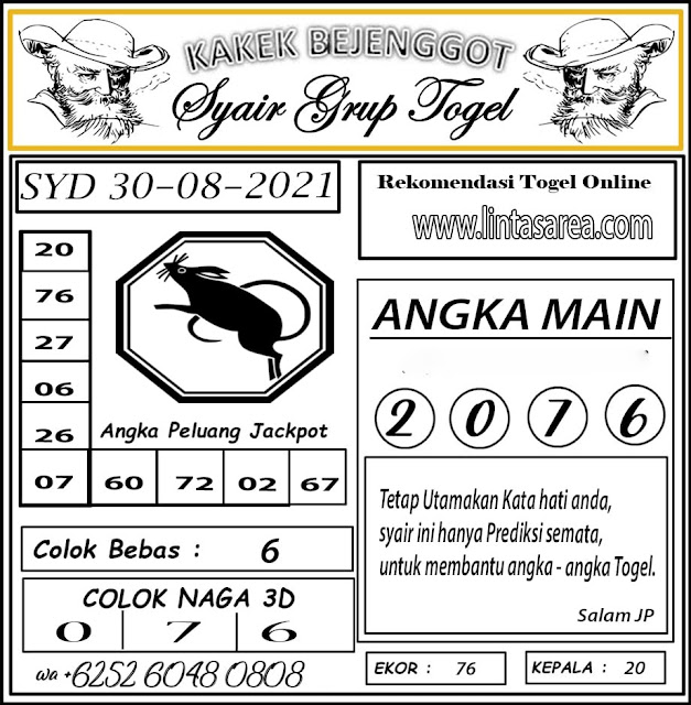 Jenis Permainan Togel Online ini sangat membutuhkan kesadaran dan kepekaan dalam membaca dan juga mamprediksi suatu angka togel. Terutama Syair 30 Agustus 2021, dalam forum syair sydney hari ini, kalian akan menemukan kode syair sydney hari ini, nah dalam prediksi togel sydney hari ini, kalian akan mendapatkan syair togel sydney terlengkap hanya di JON4D Sebagai Situs Judi Togel Online terbesar di Indoneisa. Dimana kami munculkan Syair Sydney terjitu agar memudahkan pemain dalam memahami angka keluaran di periode selanjutnya.
