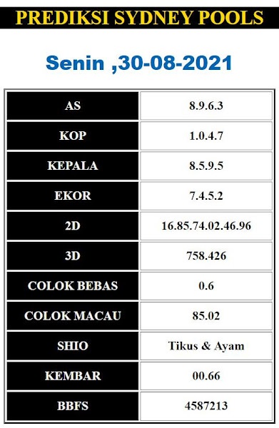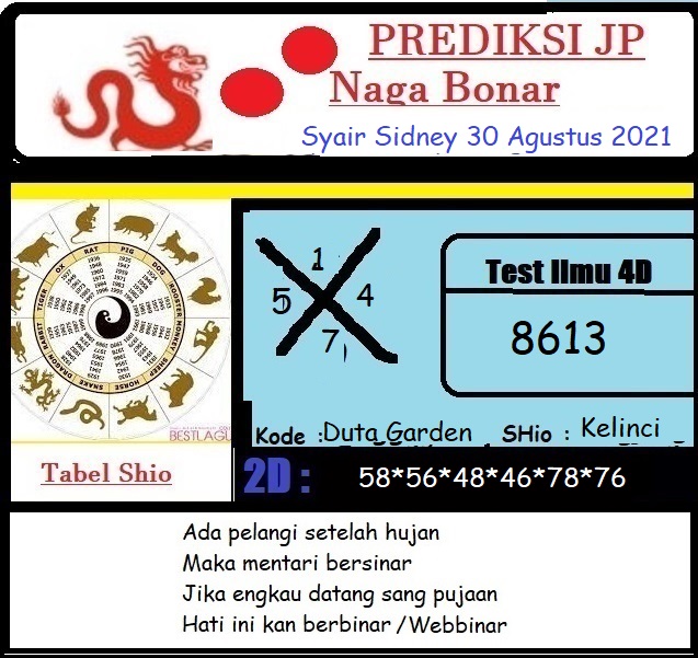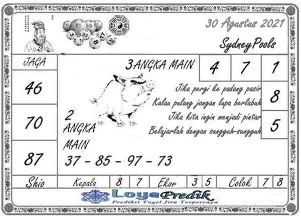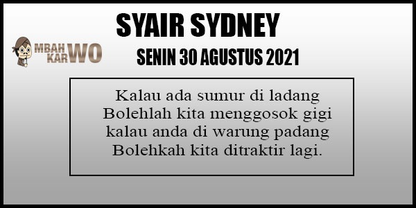 Oh ya, Selalu pergunakan naluri anda untuk membaca makna dari Prediksi Syair Sydney 30 Agustus 2021. Janganlah membaca Prediksi Syair Sydney Terjitu dengan terlalu menggebu – gebu dari makna syair yang telah kami berikan. Pahamilah dengan pelan hingga mengerti maksud dari syair yang paling banyak dicari oleh pemain judi togel online ini. Setelah kalian memahami prediksi Syair Sydney ini Kemenangan dengan lebih mudah bisa kalian raih.
