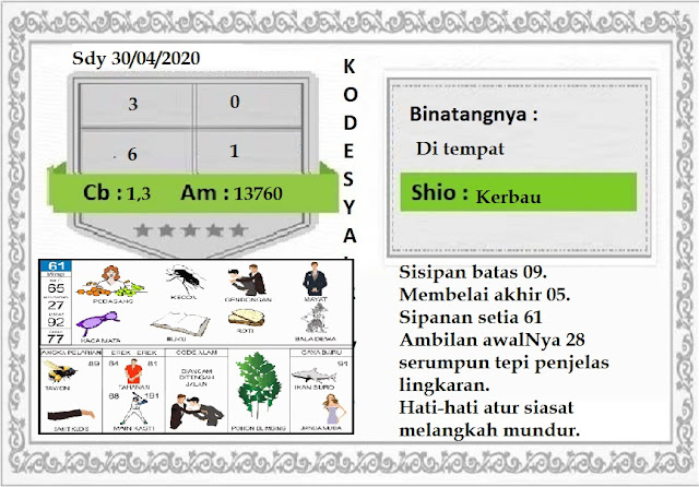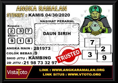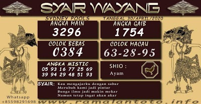 Oh ya, Selalu pergunakan naluri anda untuk membaca makna dari Prediksi Syair Sydney 30 April 2020. Janganlah membaca Prediksi Syair Sydney Terjitu dengan terlalu menggebu – gebu dari makna syair yang telah kami berikan. Pahamilah dengan pelan hingga mengerti maksud dari syair yang paling banyak dicari oleh pemain judi togel online ini. Setelah kalian memahami prediksi Syair Sydney ini Kemenangan dengan lebih mudah bisa kalian raih.