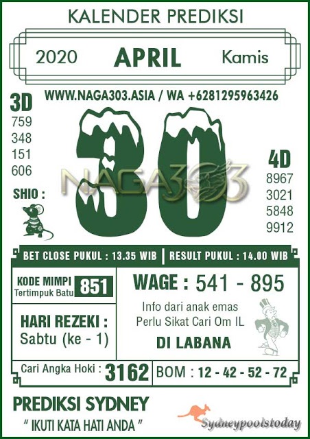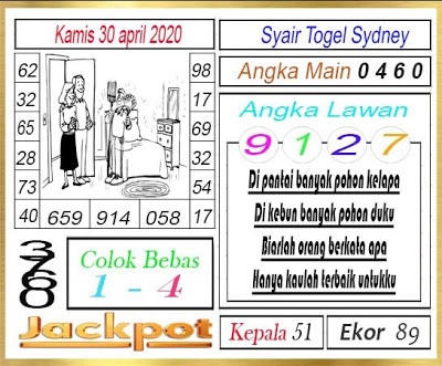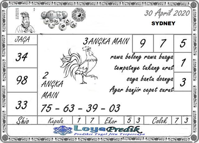 Jenis Permainan Togel Online ini sangat membutuhkan kesadaran dan kepekaan dalam membaca dan juga mamprediksi suatu angka togel. Terutama Syair Sydney 30 april 2020, dalam forum syair sydney hari ini, kalian akan menemukan kode syair sydney hari ini, nah dalam prediksi togel sydney hari ini, kalian akan mendapatkan syair togel sydney terlengkap hanya di JON4D Sebagai Situs Judi Togel Online terbesar di Indoneisa. Dimana kami munculkan Syair Sydney terjitu agar memudahkan pemain dalam memahami angka keluaran di periode selanjutnya.