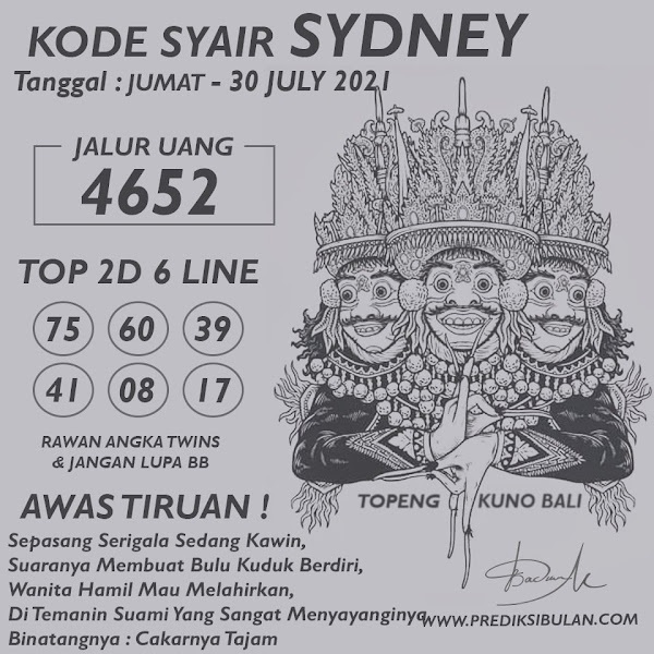Oh ya, Selalu pergunakan naluri anda untuk membaca makna dari Prediksi Syair Sydney 30 Juli 2021. Janganlah membaca Prediksi Syair Sydney Terjitu dengan terlalu menggebu – gebu dari makna syair yang telah kami berikan. Pahamilah dengan pelan hingga mengerti maksud dari syair yang paling banyak dicari oleh pemain judi togel online ini. Setelah kalian memahami prediksi Syair Sydney ini Kemenangan dengan lebih mudah bisa kalian raih.