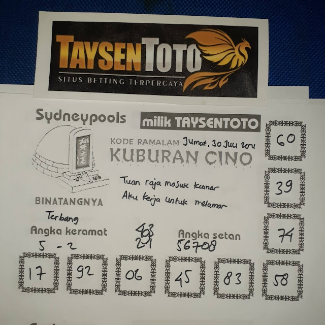 Daftar togel online terpercaya di JON4D untuk mendapatkan sebuah kode syair togel terjitu setiap harinya. Pastikan saja Anda tidak akan pernah melewatkan semua syair yang kami berikan ini. Syair Togel Sydney ini adalah yang paling banyak dicari oleh para pemain togel. Untuk itu tidak salah lagi jika anda sebagai Pemain togel online harus mengikuti secara terus menerus semua syair yang kami terbitkan di prediksi ini.