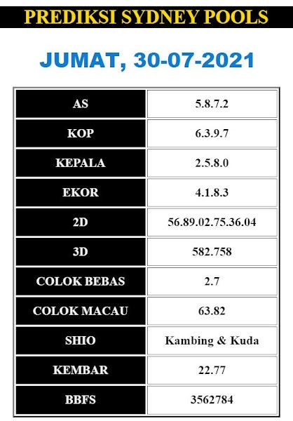 Jenis Permainan Togel Online ini sangat membutuhkan kesadaran dan kepekaan dalam membaca dan juga mamprediksi suatu angka togel. Terutama Syair 30 Juli 2021, dalam forum syair sydney hari ini, kalian akan menemukan kode syair sydney hari ini, nah dalam prediksi togel sydney hari ini, kalian akan mendapatkan syair togel sydney terlengkap hanya di JON4D Sebagai Situs Judi Togel Online terbesar di Indoneisa. Dimana kami munculkan Syair Sydney terjitu agar memudahkan pemain dalam memahami angka keluaran di periode selanjutnya.