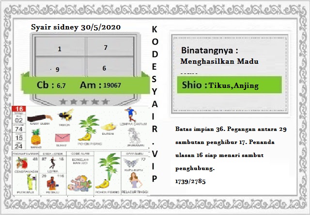 Jenis Permainan Togel Online ini sangat membutuhkan kesadaran dan kepekaan dalam membaca dan juga mamprediksi suatu angka togel. Terutama Syair Sydney 30 Mei 2020, dalam forum syair sydney hari ini, kalian akan menemukan kode syair sydney hari ini, nah dalam prediksi togel sydney hari ini, kalian akan mendapatkan syair togel sydney terlengkap hanya di JON4D Sebagai Situs Judi Togel Online terbesar di Indoneisa. Dimana kami munculkan Syair Sydney terjitu agar memudahkan pemain dalam memahami angka keluaran di periode selanjutnya.