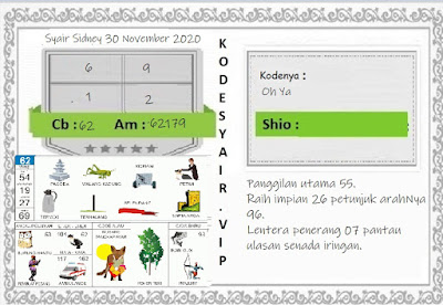 Oh ya, Selalu pergunakan naluri anda untuk membaca makna dari Prediksi Syair Sydney 30 November 2020. Janganlah membaca Prediksi Syair Sydney Terjitu dengan terlalu menggebu – gebu dari makna syair yang telah kami berikan. Pahamilah dengan pelan hingga mengerti maksud dari syair yang paling banyak dicari oleh pemain judi togel online ini. Setelah kalian memahami prediksi Syair Sydney ini Kemenangan dengan lebih mudah bisa kalian raih.