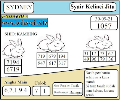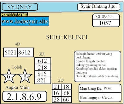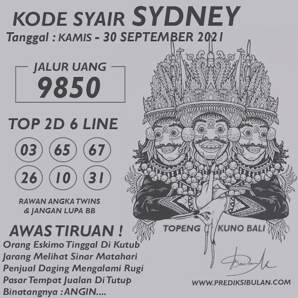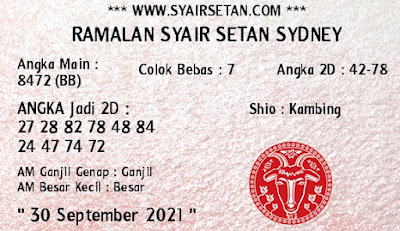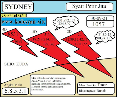 Oh ya, Selalu pergunakan naluri anda untuk membaca makna dari Prediksi Syair Sydney 30 September 2021. Janganlah membaca Prediksi Syair Sydney Terjitu dengan terlalu menggebu – gebu dari makna syair yang telah kami berikan. Pahamilah dengan pelan hingga mengerti maksud dari syair yang paling banyak dicari oleh pemain judi togel online ini. Setelah kalian memahami prediksi Syair Sydney ini Kemenangan dengan lebih mudah bisa kalian raih.