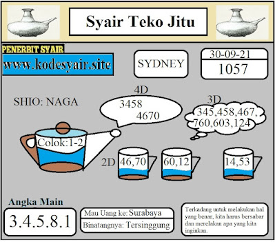 Jenis Permainan Togel Online ini sangat membutuhkan kesadaran dan kepekaan dalam membaca dan juga mamprediksi suatu angka togel. Terutama Syair 30 September 2021, dalam forum syair sydney hari ini, kalian akan menemukan kode syair sydney hari ini, nah dalam prediksi togel sydney hari ini, kalian akan mendapatkan syair togel sydney terlengkap hanya di JON4D Sebagai Situs Judi Togel Online terbesar di Indoneisa. Dimana kami munculkan Syair Sydney terjitu agar memudahkan pemain dalam memahami angka keluaran di periode selanjutnya.
