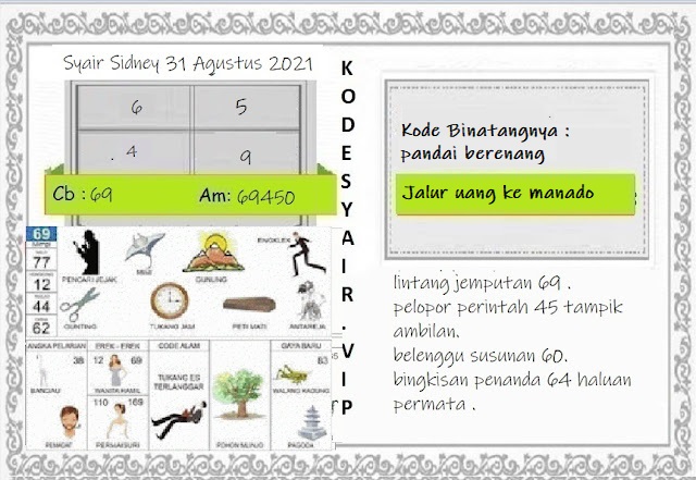 Oh ya, Selalu pergunakan naluri anda untuk membaca makna dari Prediksi Syair Sydney 31 Agustus 2021. Janganlah membaca Prediksi Syair Sydney Terjitu dengan terlalu menggebu – gebu dari makna syair yang telah kami berikan. Pahamilah dengan pelan hingga mengerti maksud dari syair yang paling banyak dicari oleh pemain judi togel online ini. Setelah kalian memahami prediksi Syair Sydney ini Kemenangan dengan lebih mudah bisa kalian raih.