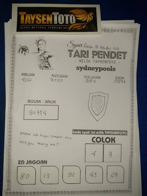 Daftar togel online terpercaya di JON4D untuk mendapatkan sebuah kode syair togel terjitu setiap harinya. Pastikan saja Anda tidak akan pernah melewatkan semua syair yang kami berikan ini. Syair Togel Sydney ini adalah yang paling banyak dicari oleh para pemain togel. Untuk itu tidak salah lagi jika anda sebagai Pemain togel online harus mengikuti secara terus menerus semua syair yang kami terbitkan di prediksi ini.