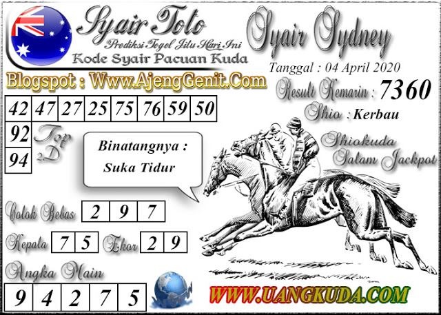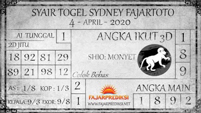 Jenis Permainan Togel Online ini sangat membutuhkan kesadaran dan kepekaan dalam membaca dan juga mamprediksi suatu angka togel. Terutama Syair Sydney 4 april 2020, dalam forum syair sydney hari ini, kalian akan menemukan kode syair sydney hari ini, nah dalam prediksi togel sydney hari ini, kalian akan mendapatkan syair togel sydney terlengkap hanya di JON4D Sebagai Situs Judi Togel Online terbesar di Indoneisa. Dimana kami munculkan Syair Sydney terjitu agar memudahkan pemain dalam memahami angka keluaran di periode selanjutnya.