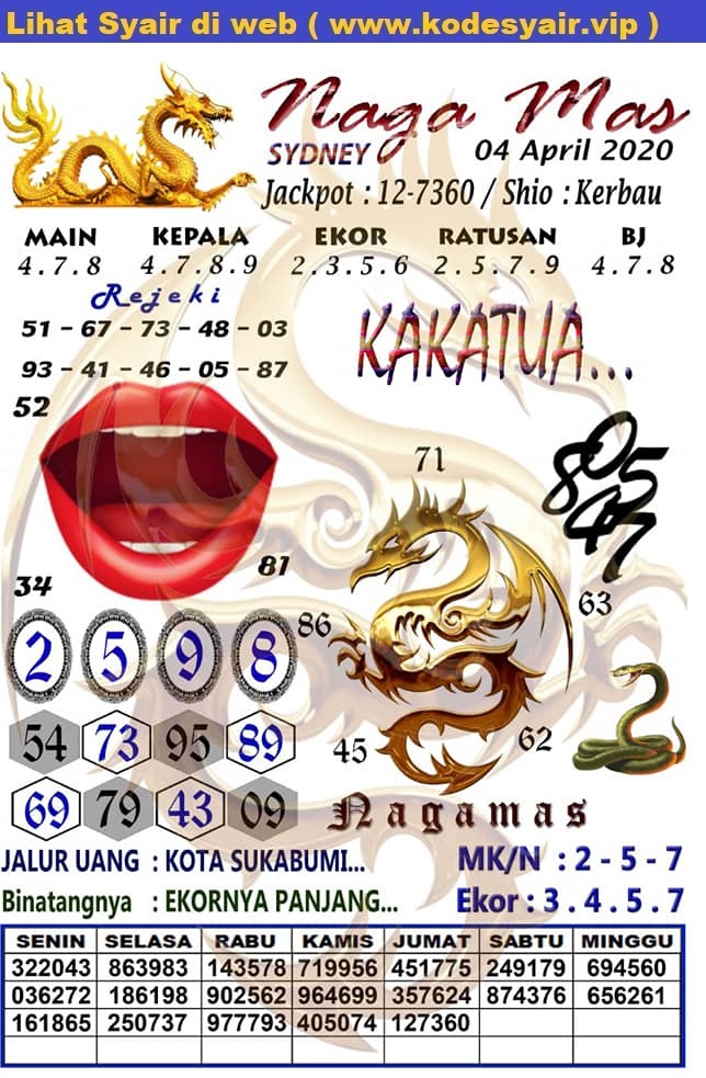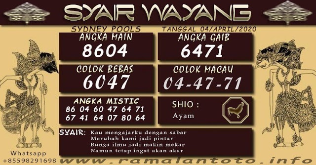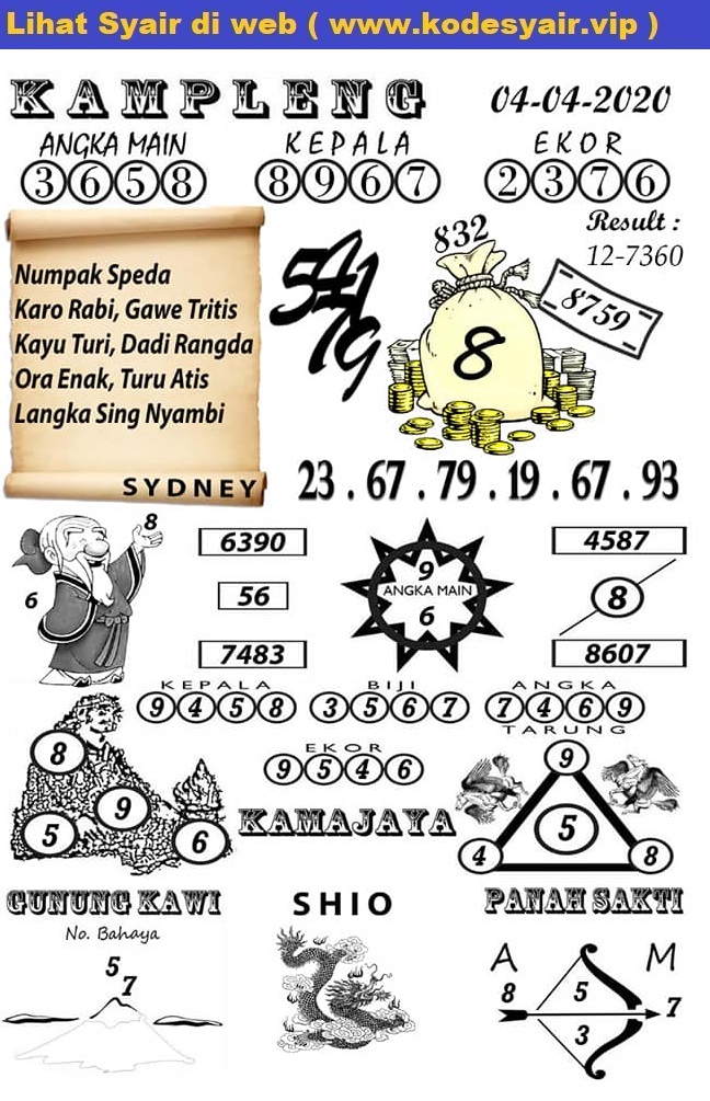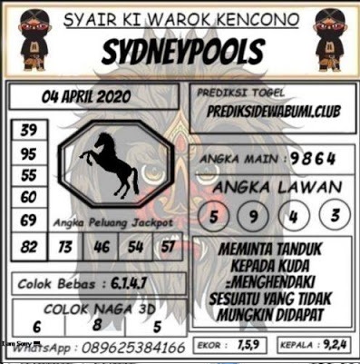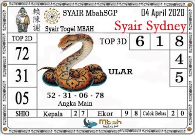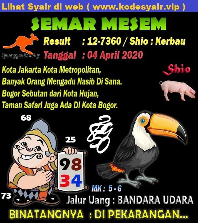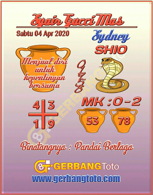 Oh ya, Selalu pergunakan naluri anda untuk membaca makna dari Prediksi Syair Sydney 4 April 2020. Janganlah membaca Prediksi Syair Sydney Terjitu dengan terlalu menggebu – gebu dari makna syair yang telah kami berikan. Pahamilah dengan pelan hingga mengerti maksud dari syair yang paling banyak dicari oleh pemain judi togel online ini. Setelah kalian memahami prediksi Syair Sydney ini Kemenangan dengan lebih mudah bisa kalian raih.