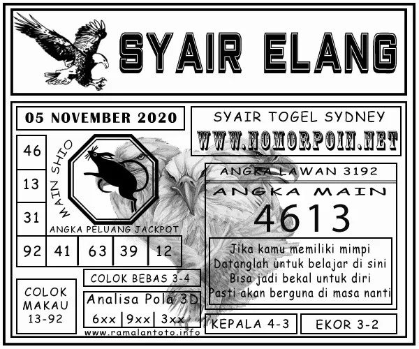 Jenis Permainan Togel Online ini sangat membutuhkan kesadaran dan kepekaan dalam membaca dan juga mamprediksi suatu angka togel. Terutama Syair 5 November 2020, dalam forum syair sydney hari ini, kalian akan menemukan kode syair sydney hari ini, nah dalam prediksi togel sydney hari ini, kalian akan mendapatkan syair togel sydney terlengkap hanya di JON4D Sebagai Situs Judi Togel Online terbesar di Indoneisa. Dimana kami munculkan Syair Sydney terjitu agar memudahkan pemain dalam memahami angka keluaran di periode selanjutnya.
