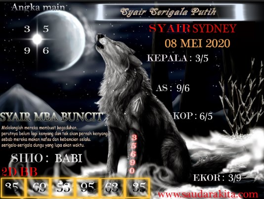 Jenis Permainan Togel Online ini sangat membutuhkan kesadaran dan kepekaan dalam membaca dan juga mamprediksi suatu angka togel. Terutama Syair Sydney 8 Mei 2020, dalam forum syair sydney hari ini, kalian akan menemukan kode syair sydney hari ini, nah dalam prediksi togel sydney hari ini, kalian akan mendapatkan syair togel sydney terlengkap hanya di JON4D Sebagai Situs Judi Togel Online terbesar di Indoneisa. Dimana kami munculkan Syair Sydney terjitu agar memudahkan pemain dalam memahami angka keluaran di periode selanjutnya.