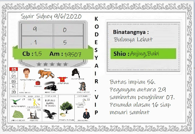 Jenis Permainan Togel Online ini sangat membutuhkan kesadaran dan kepekaan dalam membaca dan juga mamprediksi suatu angka togel. Terutama Syair Sydney 9 Juni 2020, dalam forum syair sydney hari ini, kalian akan menemukan kode syair sydney hari ini, nah dalam prediksi togel sydney hari ini, kalian akan mendapatkan syair togel sydney terlengkap hanya di JON4D Sebagai Situs Judi Togel Online terbesar di Indoneisa. Dimana kami munculkan Syair Sydney terjitu agar memudahkan pemain dalam memahami angka keluaran di periode selanjutnya.